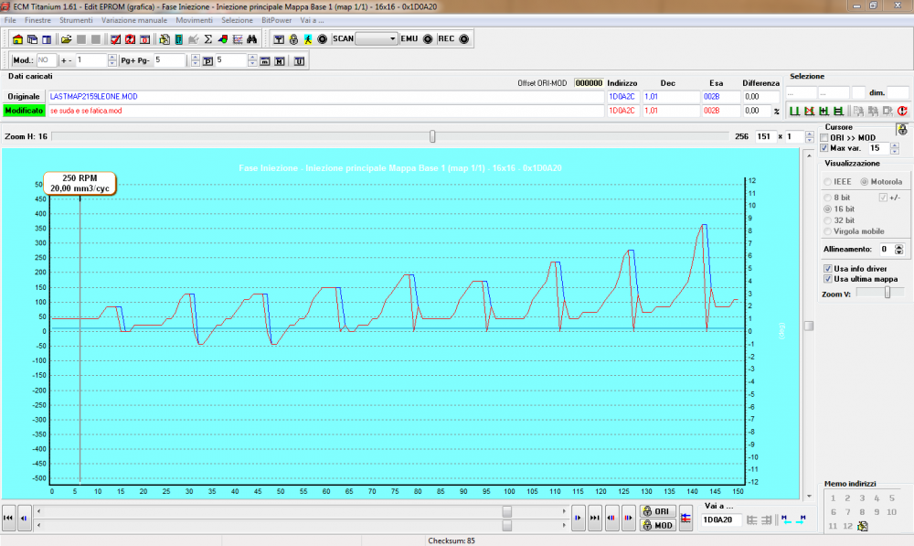 159Nightmare Inviato 31 Dicembre 2016 Autore Inviato 31 Dicembre 2016 Il 21/12/2016 at 16:26 , Tky ha scritto: Ho ricontrollato bene la mappa e ci sono un sacco di errori ancora... La mappa Turbo non capisco come l'hai modificata.. hai dato a % e quella si fa SOLAMENTE a punti... Mappa Rail sbagliata... hai dato sempre a % ma il BP si ferma a 70mm3... Limitatori sbagliati.. Mappe pedale sbagliate.. non arrivi a 100mm3, ti fermi molto prima.. Te le ho rimesse ORI da rifare da ZERO! La mappa "quantità di carburante iniettata" non va toccata.. è la mappa conversione nm/IQ che hai già impostata a 100mm3.. calibra le mappe pedale in base alla IQ messa li, altrimenti fai un bordello medievale e non ci capisci più una se*a di quanto stai iniettando. Ti posto questa mod con delle modifiche fatte da me, correzioni e mappe incomplete che devi calcolarti.. i punti in tabella che vedi portati a ZERO, sono i punti che devi calcolarti tu e rifai le mappe pedale fatte ad cassius. Fammi vedere che sai fare!!! se suda e se fatica.mod Buongiorno Tky. Mi scuso per l'assenza per tutto questo tempo, ma causa lavoro non mi sono proprio dedicato neanche a leggere nessuna mappa con ECM. Mi chiedevo, vista la mappa proposta da te ( Ovviamente ancora da completare), se potessi dirmi il significato dei "Tagli" nelle varie curve. Ti allego il tutto. Grazie anticipatamente.