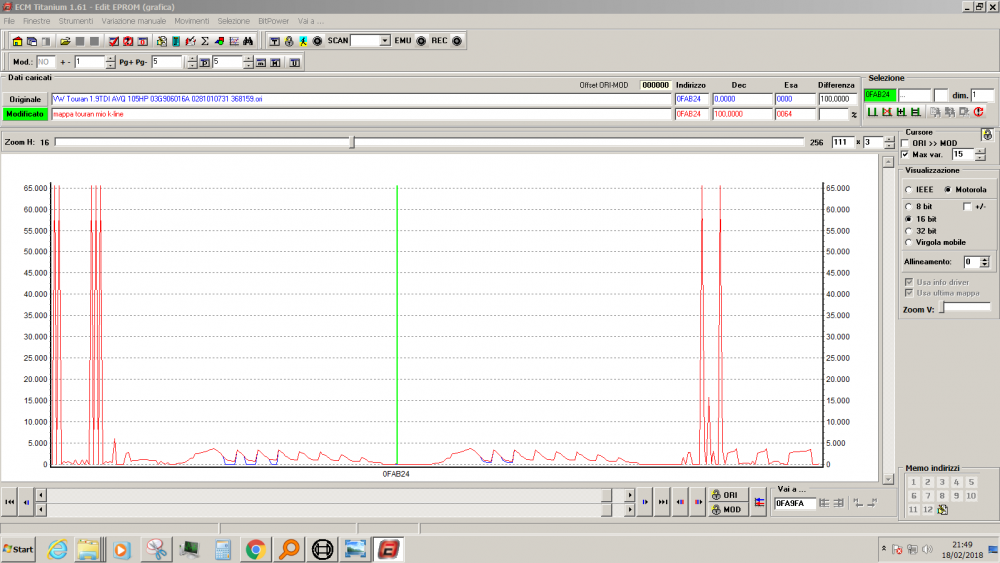 T.S.R. Inviato 19 Febbraio 2018 Autore Inviato 19 Febbraio 2018 54 minuti fa, sisco ha scritto: visto che la macchina a freddo partiva bene potresti riportare ori la mappa avviamento a freddo (che è la seconda come dici tu) però tra la mappa a caldo e quella a freddo c'è un bit modificato che per me non centra niente, per quanto riguarda egr dovrebbe essere come dice joker, quindi hai 3 panettoni in più azzerati, fai le modifiche del caso e prova come va (se vuoi) Esattamente, ho modificato il file mod riportando la mappa accensione a freddo come la ori ed eliminato il bit intermedio. La mia preoccupazione è che magari l’accensione a caldo sia stata modificata con software che non sia stata fatta bene creandomi problemi