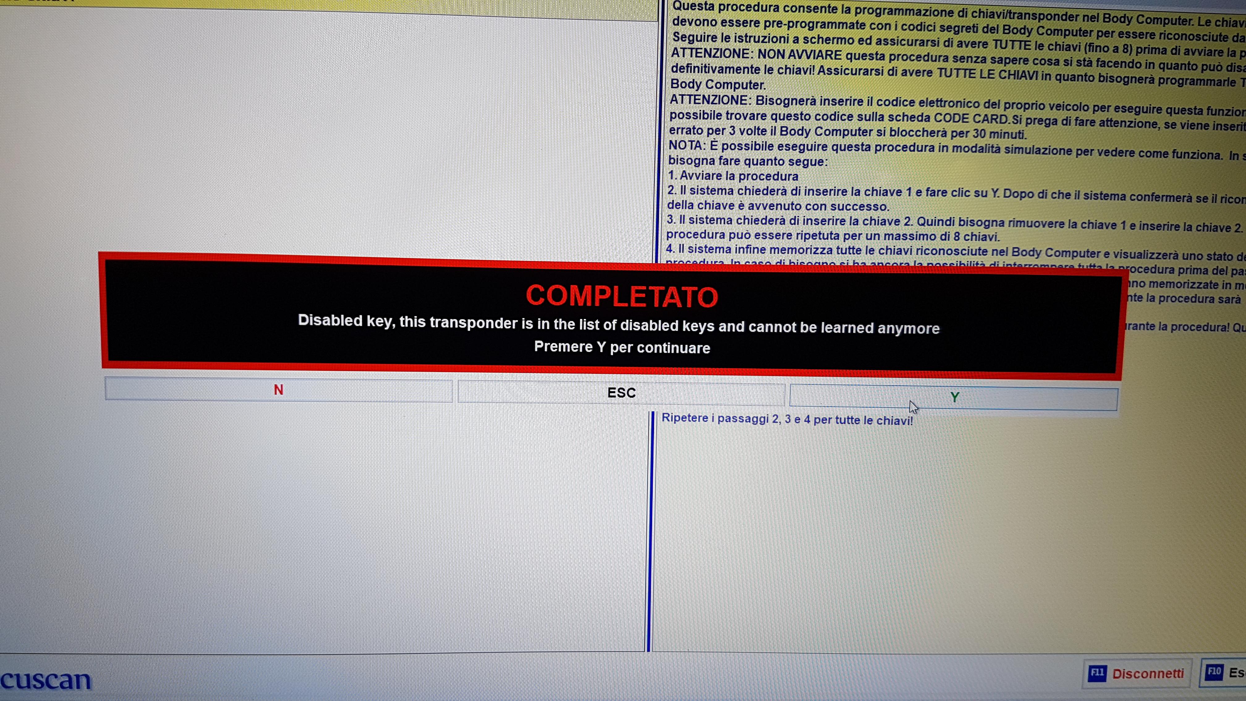 Ciao, si certo ho l'elm327. Il problema è che quando provo a riabilitarla mi dice "Errore, il seguente TEG si trovo nella tabella dei TEG disabilitati, impossibile programmare". In pratica, è come se la chiave disabilitata o meglio il code del trasponder sia stato messo in una tabella in memoria nell'ECU, in cui non si riesce più a rimuovere. Credo sia una specie di protezione.