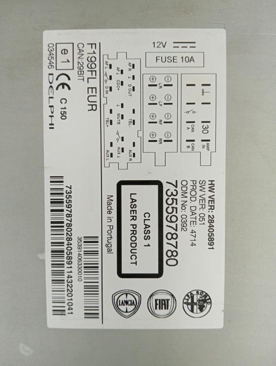 1. Buongiorno , Avrei bisogno di un grande aiuto.non ho il codice autoradio della mia punto 199 .Lo stereo è un Delphi made in Portogallo. Posto la foto con il seriale . Qualcuno può aiutarmi?