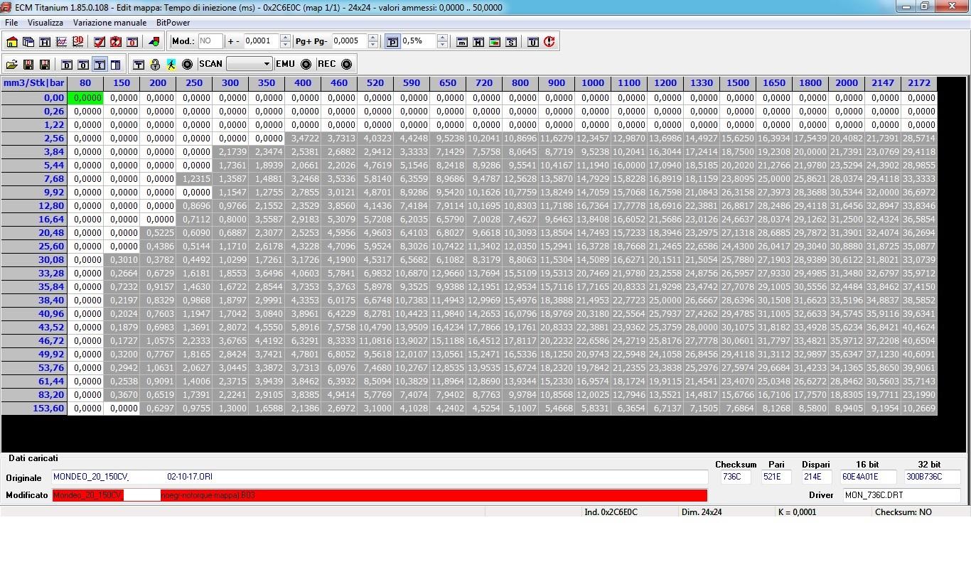 l'unica cosa che vorrei precisarti è che questa macchina era già stata mappata in precedenza da un rimappatore qualche anno fa, poi l'ho rifatta da zero. La cosa che mi ha lasciato un po' perplesso è che aveva modificato solo i tempi di iniezione arrivando fino al 40% di incremento, pressione turbo e qualche limitatore coppia massima. Per il resto non aveva toccato per nulla nelle varie mappe relative alla coppia